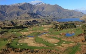 This is a fantastic layout set over 101 hectares (250 acres) of former deer farm on the outskirts of Arrowtown in Central Otago. The Mill race winds its way through the property and feeds the ten lakes and various ponds and waterways on the golf course. Trees, both native and exotic, are a feature of the course. The Hills Course is a private members clubs which will on occasion allow outside visitor play. Host venue to the New Zealand Open in 2009.