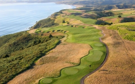 Renowned architect Tom Doak's first project outside of the U.S., Cape Kidnappers is perched on fingers of land nearly 500 feet above Hawke's Bay. This vertigo-inducing course, creased by ravines and patrolled by gannets, belongs more to Heaven than Earth. It is seaside golf at its finest. You'll hit heroic shots over the tops of tea trees, and play cautiously along the edges of deep ravines. Every hole has a view of the Bay. Enjoy your game and enjoy the setting. It's unique!